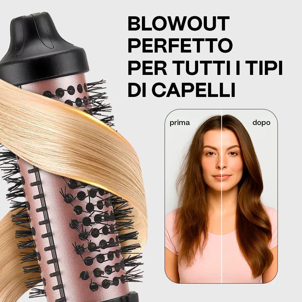 Dì ciao a LURE BLOWOUT. Questa spazzola termica elimina il crespo, aumenta la lucentezza e ti permette di creare tutto, dal volume liscio ai ricci elastici.