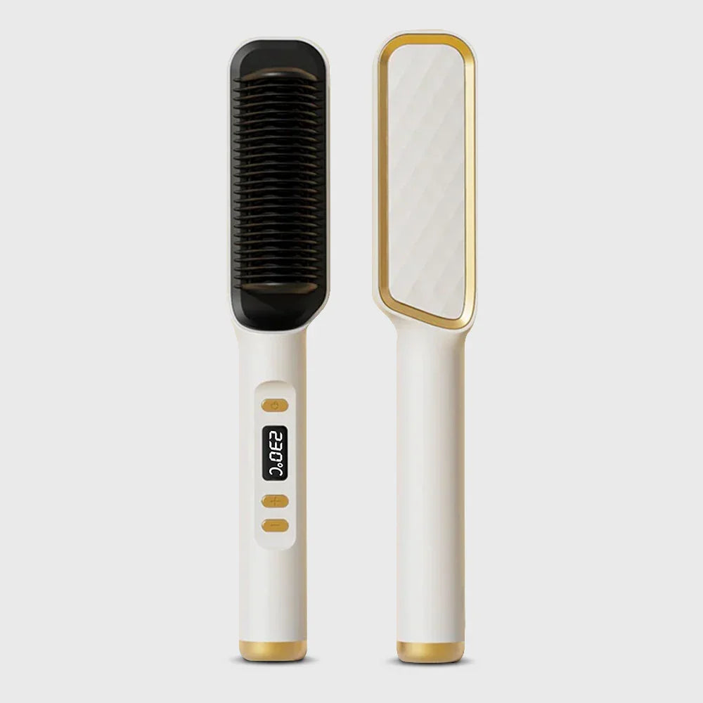 Trasforma i tuoi capelli a casa con LURE HEATPRO, la potente spazzola 2-in-1 che liscia e modella. Con diverse impostazioni di temperatura (130 °C–230 °C), display LED e riscaldamento PTC, è adatta a ogni tipo di capello e si scalda in soli 20 secondi.